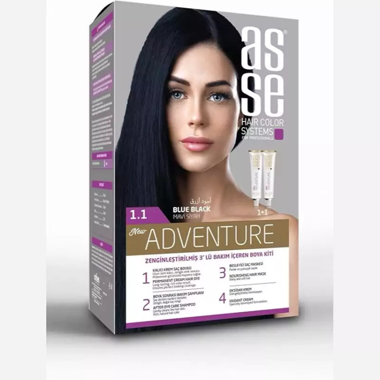کیت رنگ مو بدون آمونیاک asse ساخت کشور ترکیه رنگ سیاه آبی blue black